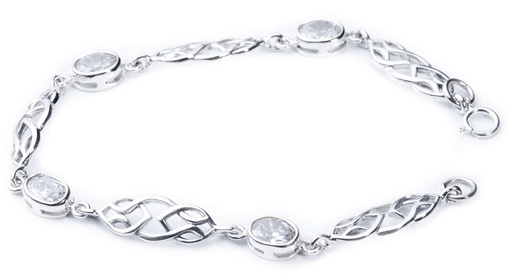 Silber Armkette mit weissen Kristallen und Keltischer Ornamentik - Bronze- und Silberschmuck für Reenactment, LARP und Fantasie
